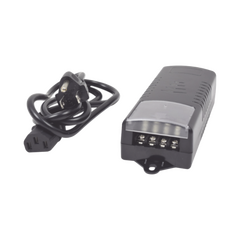 Voltage input: 110 to 240 VAC. Voltage output ADJUSTABLE: 11-15 Vcc. 5A smart system (distributed in 4 outputs). Built-in PTC thermal fuse, 6A. Power cord. LED power indicator. Certifications: CE Weight: 0.88 lb Dimensions: 5.11 x 1.96 x 1.18"