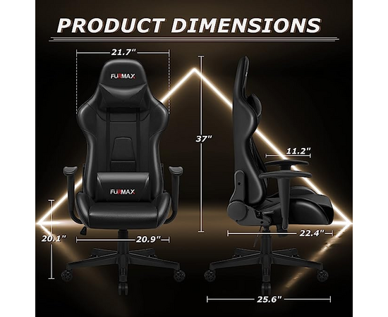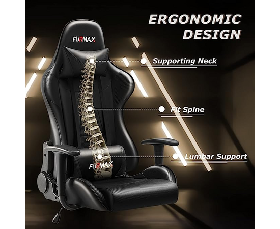 Furmax Video Gaming Chair Ergonomic PC Computer Office Chair Racing Leather Adjustable Swivel Chair with Headrest and Lumbar Support for Adults (Black).