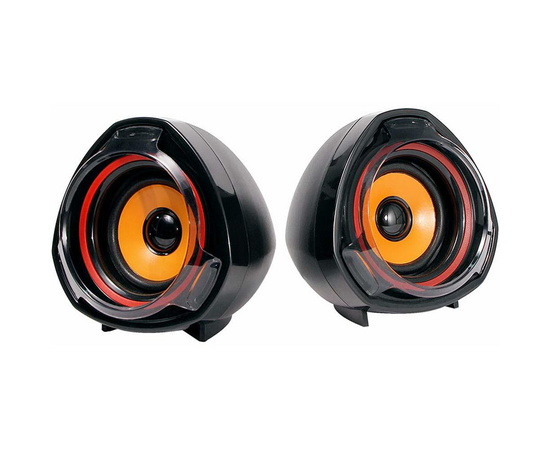 Sound technology with 2.0 Channel. Suitable for PC/Laptop/MP3/MP4, etc. Pure, clear and elegant sound quality. Small size design, easy to carry.