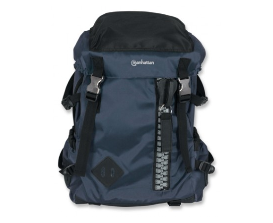With lots of cargo space, heavy-duty construction and rugged looks, the Zippack backpack from Manhattan is perfectly at home on campus, in the boardroom, flying across continents or hiking the great outdoors. Designed to go wherever and whenever you do, the exterior of this bag is made from water-resistant, heavy-duty nylon and reinforced with a thick, synthetic suede patch on the bottom for extra durability. It features three main cargo compartments: a spacious, top-loading main cargo compartment with a padded computer sleeve for laptops up to 15.6", a rear-facing compartment (with signature zip enclosure) that offers quick and easy access to mobile devices or other medium-sized items, and a small, top-mounted compartment for pens, business cards and more. If all that internal space is not enough, the Zippack has two external pockets for water bottles, digital cameras or other quick-access items, as well as reinforced carabiner patches and nylon straps for attaching things to the outside.